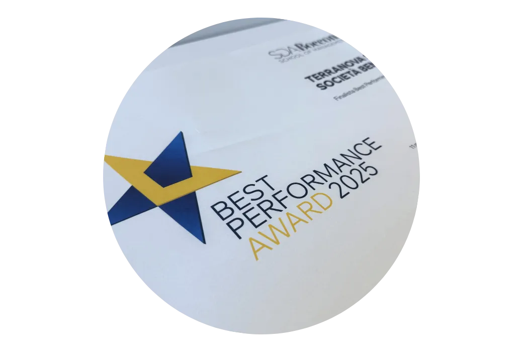 Nel 2026 siamo stati riconosciuti nella top 5 delle aziende italiane nella categoria small company al Best Performance Award, iniziativa SDA Bocconi che premia le aziende che si distinguono per la creazione di valore economico, tecnologico, umano, sociale e ambientale, operando in modo complessivamente sostenibile.