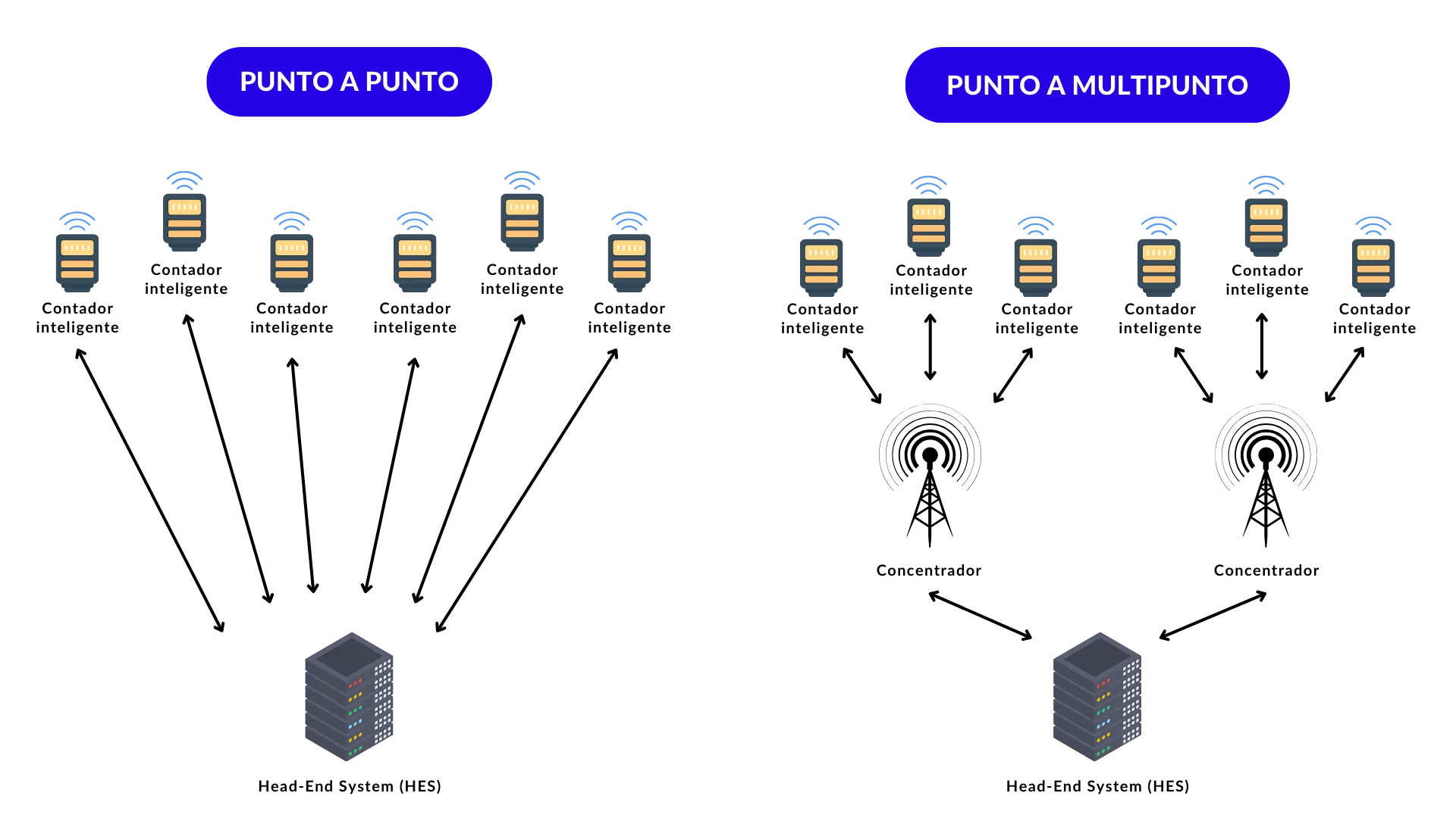 En función del modo de comunicación establecido entre los contadores y el Head-End System (HES), es posible dividir los contadores en dos grandes familias: