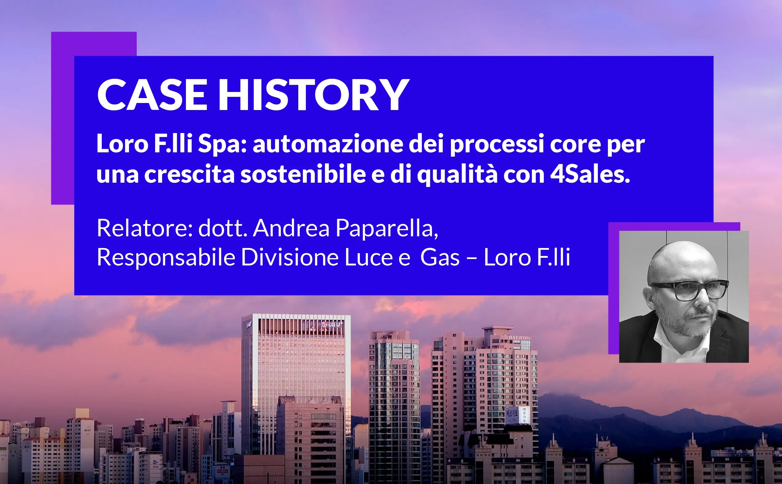Andrea Paparella, Responsabile Divisione Luce e Gas di Loro F.lli Spa, racconta come l'introduzione di 4Sales nei processi di contatto CRM, abbia evidenziato l'opportunità e l'utilità di un monitoraggio continuo della storia del cliente e delle sue forniture. Tra i vantaggi riconosciuti a 4Sales, parla di come un sistema software integrato aiuti a tracciare e risolvere, in tempi rapidi, le criticità legate alla fatturazione o ai contratti.