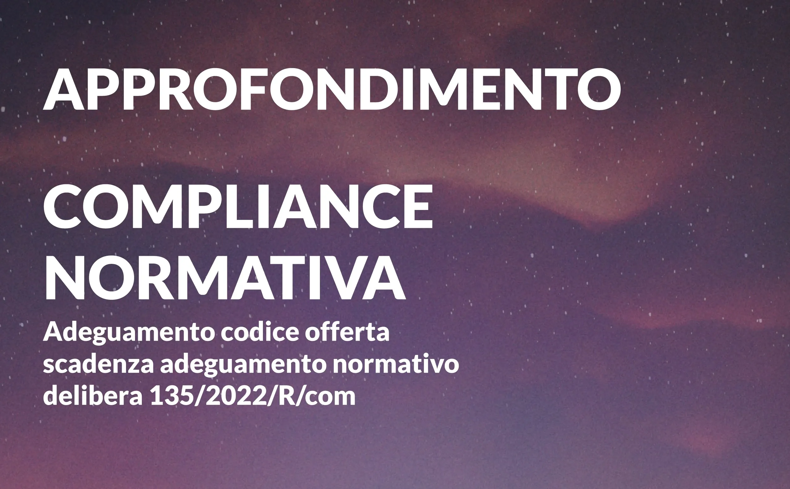- Codice offerta: scadenza adeguamento normativo delibera 135/2022/R/com