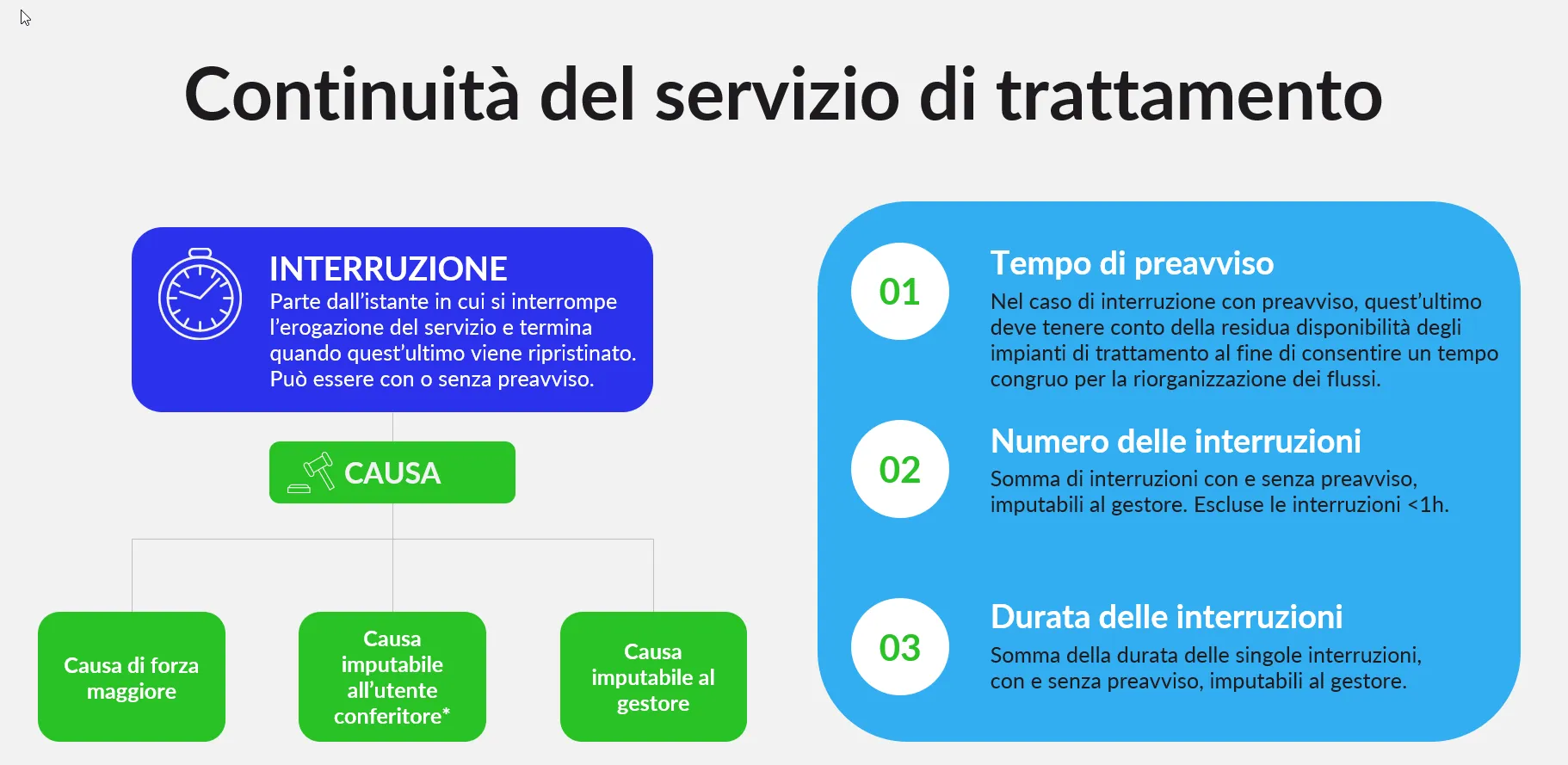 Il Titolo IV invece nasce allo scopo di verificare l’affidabilità del sistema infrastrutturale attraverso il monitoraggio delle interruzioni. L’interruzione è considerata come il periodo di tempo a partire dall’istante in cui si sospende l’erogazione del servizio fino al completo ripristino dello stesso.
