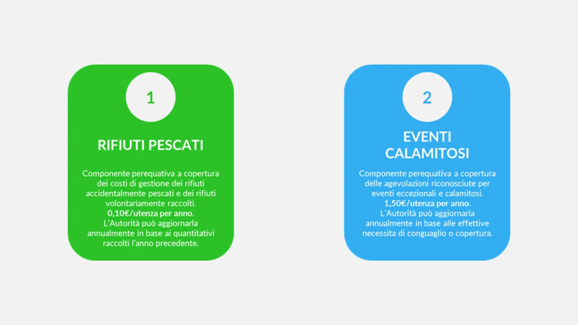 A questo scopo, a partire dal 1 gennaio 2024 sono istituite due componenti perequative unitarie che si applicano a tutte le utenze del servizio di gestione dei rifiuti urbani.
