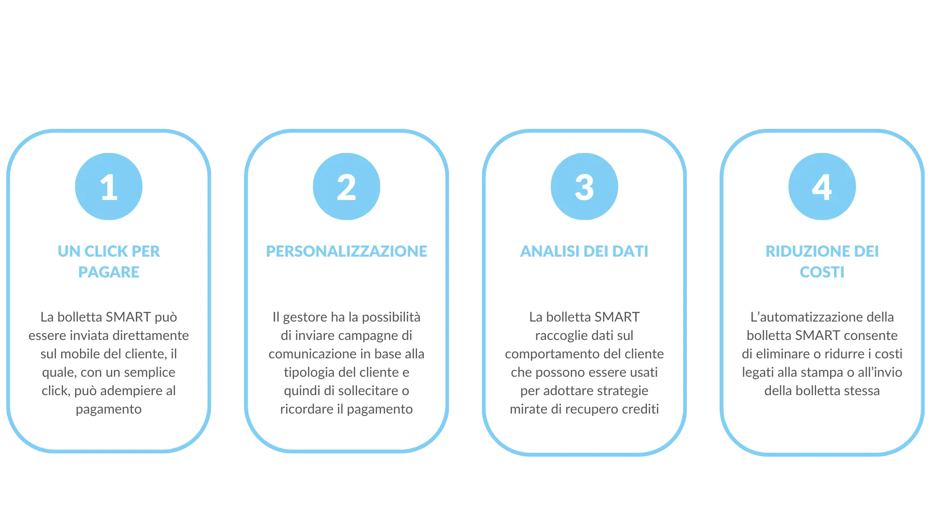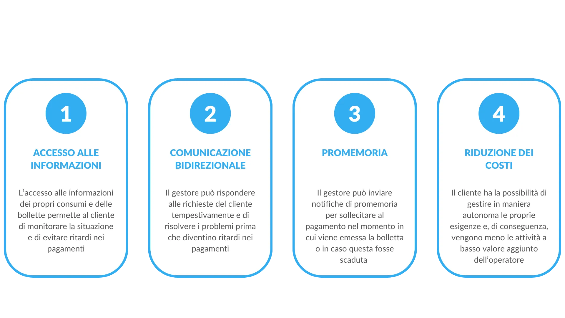 Infine, il pagamento online, grazie all’evoluzione digitale, in aumento soprattutto dagli anni della pandemia, rappresenta sicuramente un metodo che possa andare incontro alle necessità del cliente finale e facilitare così, il pagamento della bolletta dell’acqua. Secondo il report di The global payments del 2021, il 35% delle persone preferisce pagare le bollette su dispositivi mobile e, infatti, il 52% delle transazioni avviene su di essi. Di conseguenza, offrire diverse opzioni di pagamento, tra cui quello digitale, è sicuramente efficace. I vantaggi, per esempio, della bolletta smart, strumento interattivo ad alto potenziale di recupero crediti, possono essere: