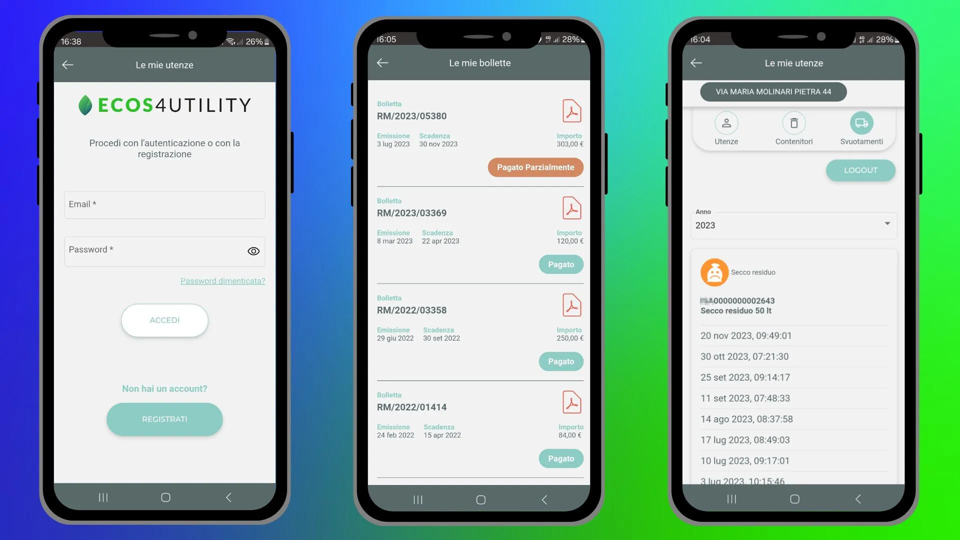 ECOS4UTILITY permette di visualizzare tutte le informazione relative all'utente nel portale dedicato La Mia TARI attraverso l'accesso all'area riservata relativa all'utenza.