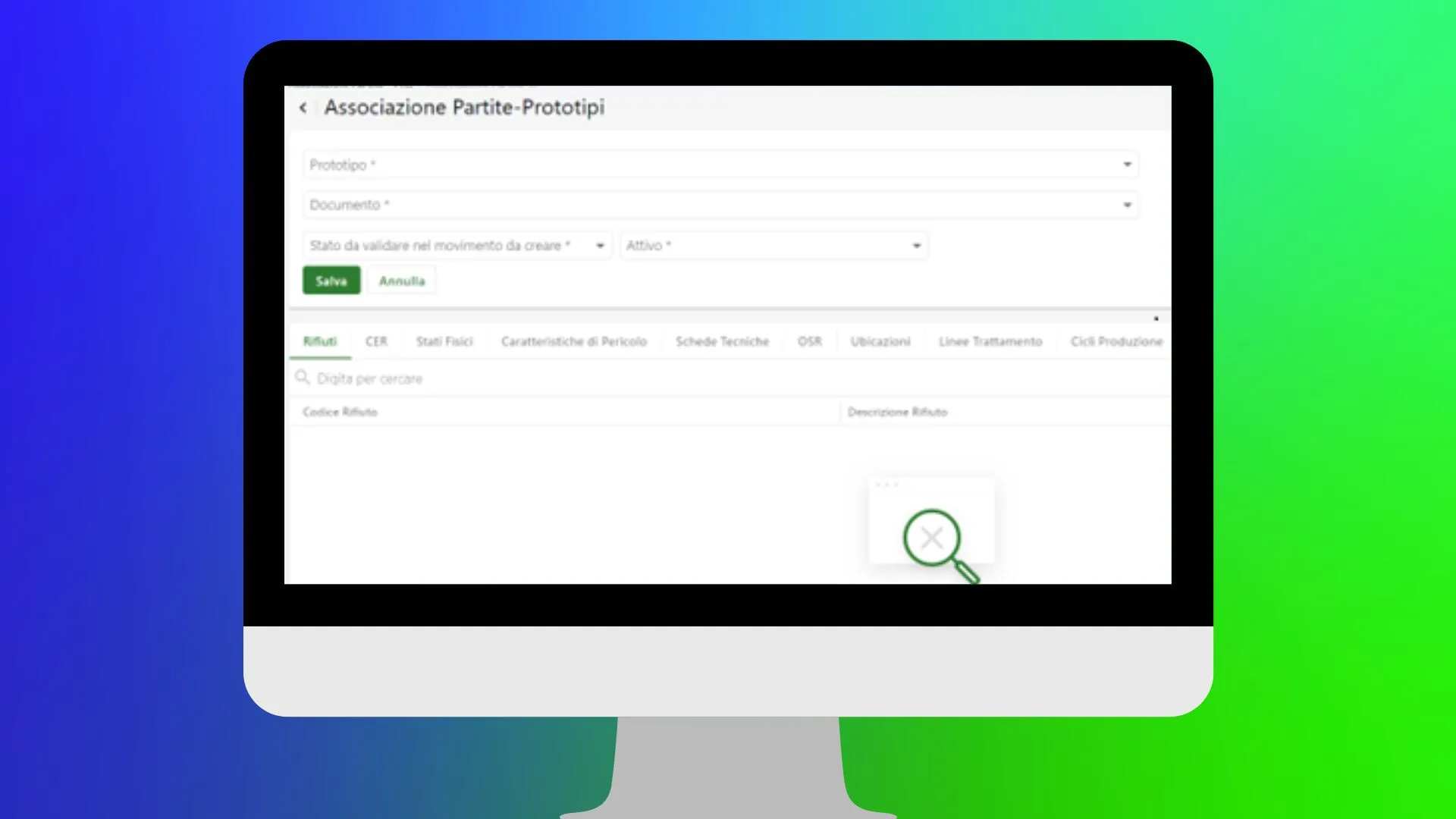 La registrazione automatizzata si avvale di Prototipi di Lavorazione preconfigurati e di Regole di Assegnazione degli stessi alle partite di rifiuti in ingresso all’impianto.