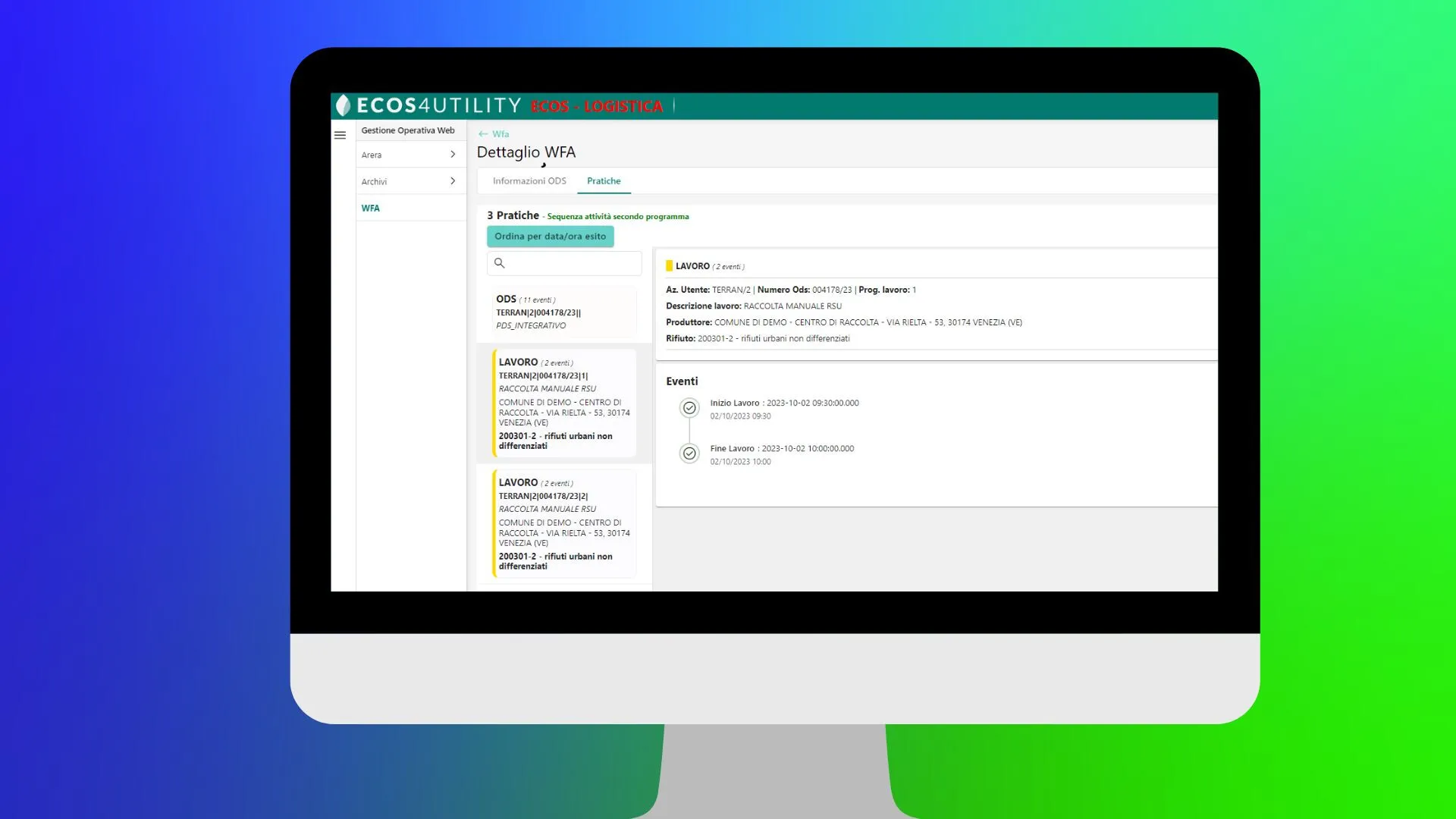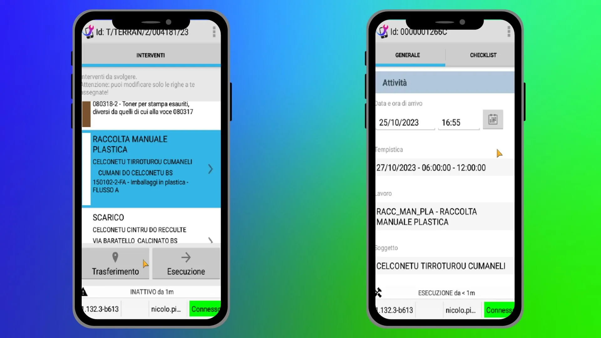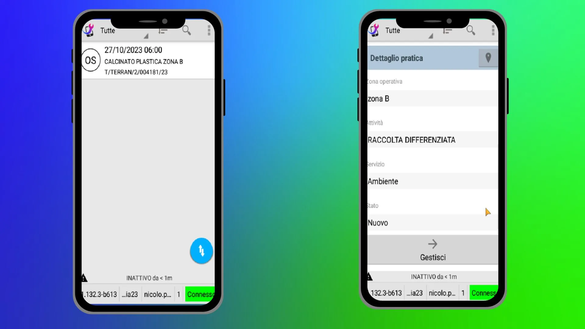 Una volta definite le assegnazioni agli operatori, ciascun Task viene tradotto in Missione e risulta visualizzabile dai rispettivi assegnatari del servizio. I dettagli relativi ai Lavori e gli Scarichi vengono rappresentati nell’app come sequenza ordinata di Pratiche all’interno della missione.