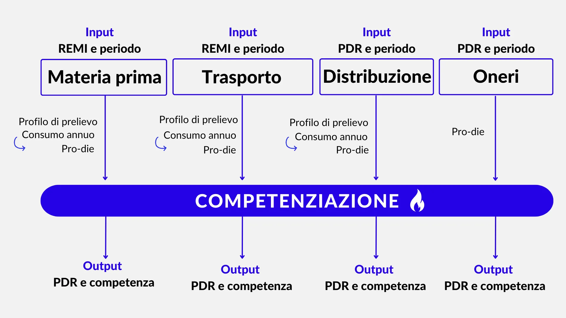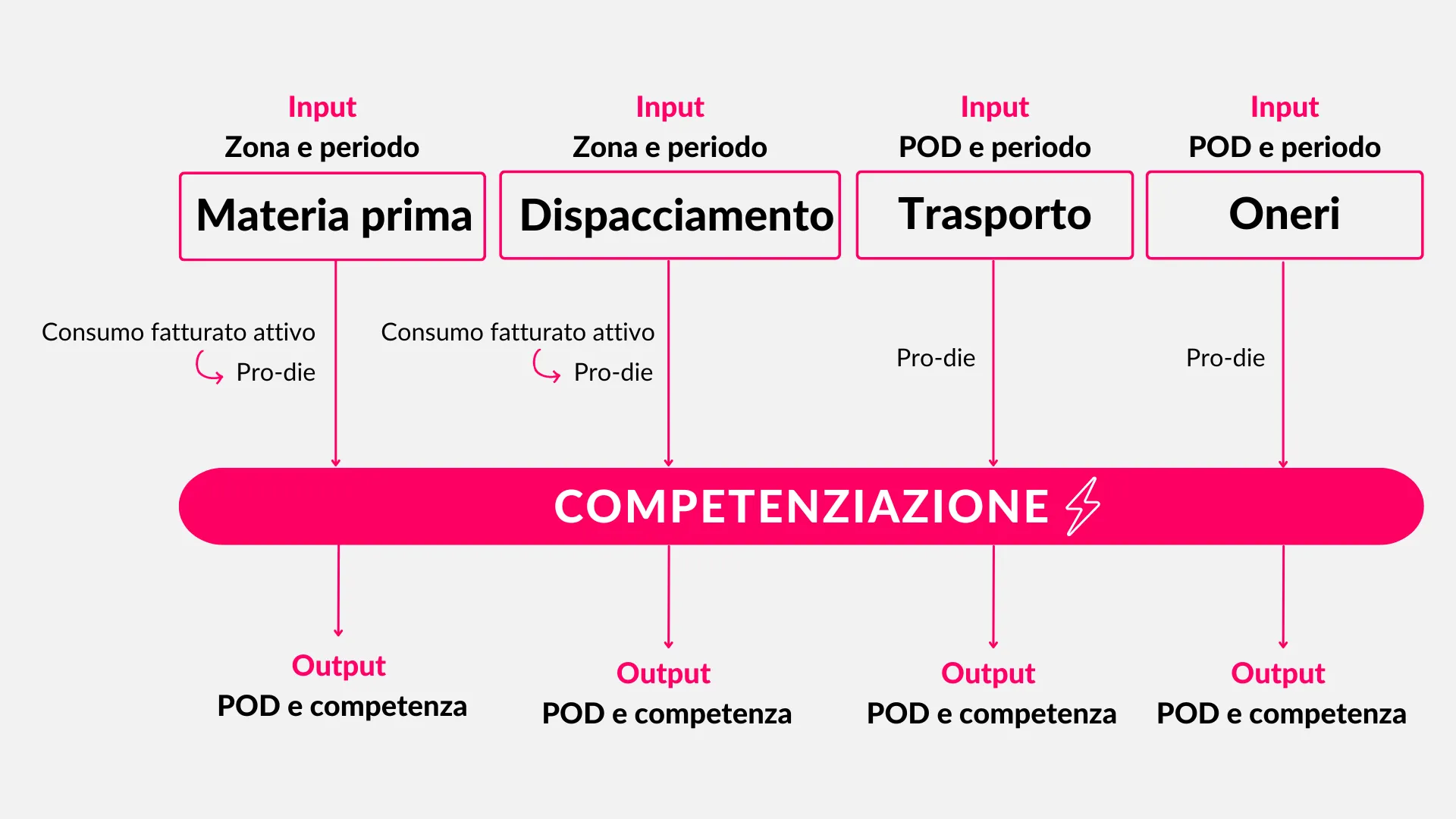 Per la gestione del ciclo passivo e del settlement tutti questi attori devono fornire svariati flussi e dati che devono essere acquisiti, normalizzati e processati secondo logiche più o meno complesse al fine di renderli confrontabili.