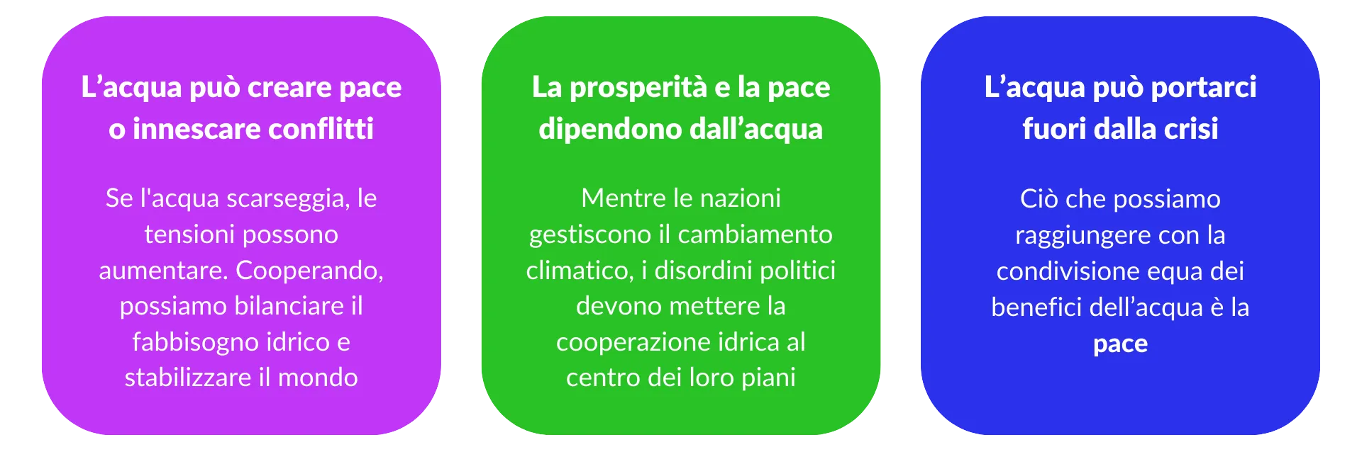 Il tema “Acqua per la pace” indetto dall’UNESCO ha lo scopo di far riflettere su quanto la pace e i conflitti tra i paesi dipendano dalla disponibilità e dalla qualità dell’acqua dolce.