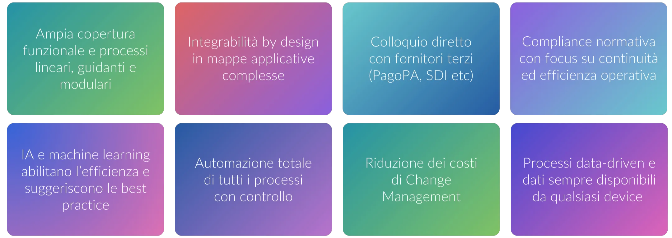 Il software deve consentire di industrializzare i processi, abilitando la reingegnerizzazione, rendendo misurabili le performance, lavorando sull’efficienza e l’automazione con controllo di tutte le aree di business