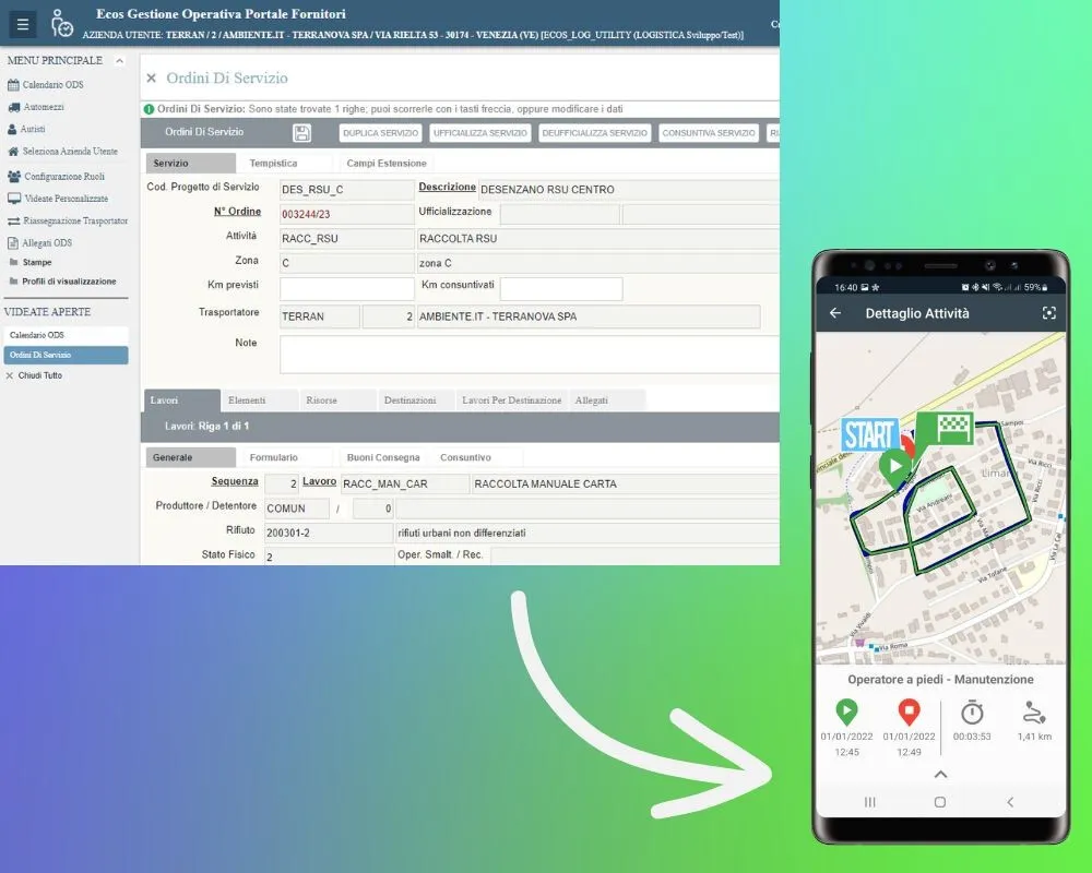 > Assegnazione automatica del giro di raccolta all’autista incaricato grazie agli ordini di servizio