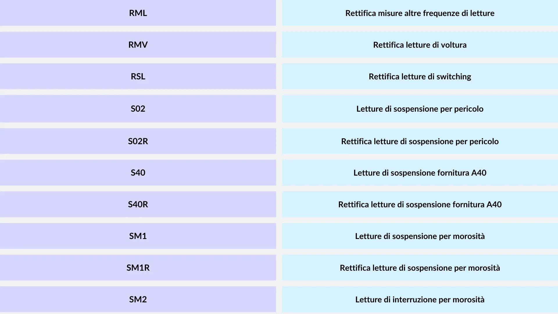 - quelli rilevati a seguito di sospensioni o riattivazioni per morosità;