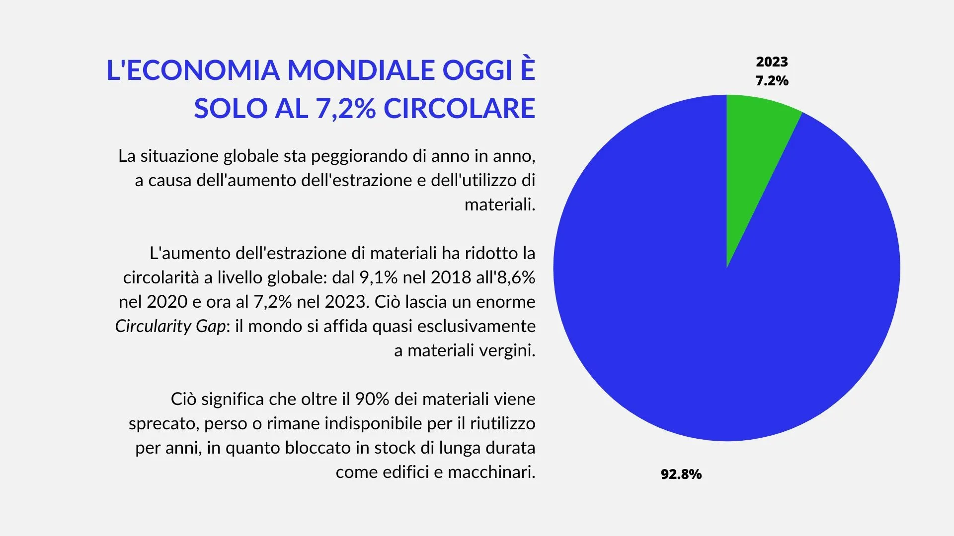 Il rapporto sottolinea il trend negativo nello sviluppo dell’economia circolare, nel 2023 solo il 7,2% dell’economia mondiale è circolare, cinque anni fa era il 9,1% come emerso dal Circularity Gap Report 2023. Inoltre, desta preoccupazione l’aumento del 10% della produzione dei rifiuti in Italia nel periodo 2010-2020, crescono i rifiuti speciali mentre si nota una diminuzione in quelli urbani.