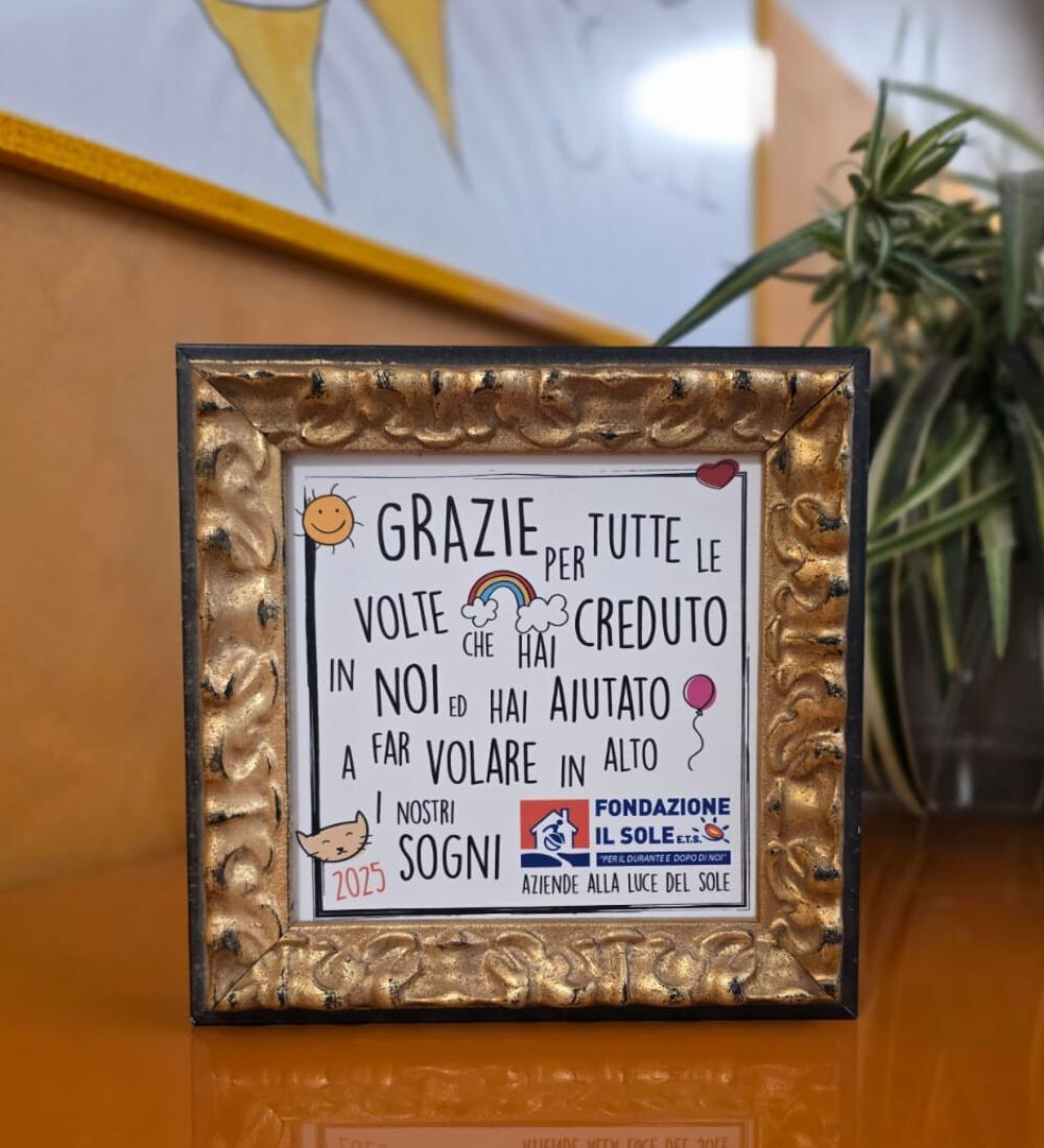 Nel 2025, abbiamo partecipato alla cena di ringraziamento offerta dalla Fondazione insieme alla altre "aziende alla luce del sole''. In questa occasione i ragazzi della Fondazione hanno consegnato una targa speciale a Roberto Milani, socio fondatore di Terranova.